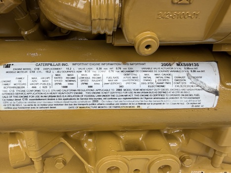 (LIKE NEW) 2005 Caterpillar C15 ACERT Diesel Engine (EPA04), Miles: 31,985, Hours: 1651, Serial # MXS59135, AR # 261-5366, Fam # 5CPXH0928EBK, 475HP RATED, 625HP Max Rating, Long Block # 10R4412/ 20R9...