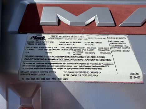 | Engine | Mack MP8 505HP 6 Cyl |