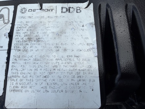 (GOOD USED/ RUN TESTED/ FULLY INSPECTED) 2018 DETROIT DD8 DIESEL ENGINE (EPA17), SERIAL # 936913S0001929, ENGINE FAMILY # JDDXH07.7MDE, 7.7L, 375 HP RATED @ 2200 RPM!! CALL US FOR MORE INFORMATION ON ...